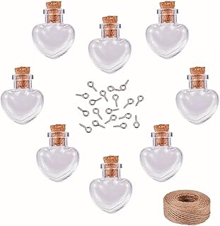 PandaHall 20er Mini Herz Glasflaschen mit Korken Wish Message Flaschen, 20er Augenschrauben, 30 Yards Bindfäden