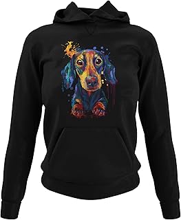 Deutscher Dackel Damen Hoodie - Frauen Kapuzenpullover für Teckel Fans Sweatshirt angenehm weich in Schwarz Rosa Weiß und Grau Regular Fit Figurbetont für Hundeliebhaber gr. S-3XL