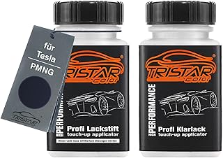 TRISTARcolor Autolack Lackstift Set für Tesla PMNG Steel Grey Perl Metallic Basislack Klarlack je 50ml