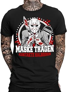 Maske tragen - Kontakte halbieren Jason Herren Fun T-Shirt | Halloween | Purge | Virus | Sprüche | Horror | Statement | Männer T-Shirt |