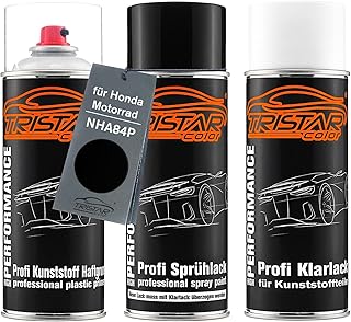 TRISTARcolor Motorradlack Spraydosen Set für Kunststoff Stoßstange für Honda Motorrad NHA84P Pearl Nightstar Black Haftgrund Basislack Klarlack mit Weichmacher Sprühdose