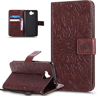 Kompatibel mit Huawei Y5 2017 Hülle,Huawei Y5 2017 Schutzhülle,Prägung Mandala Blumen Sonnenblume PU Lederhülle Flip Hülle Cover Ständer Etui Wallet Tasche Case Schutzhülle für Huawei Y5 2017,Braun