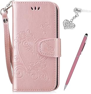 Kompatibel mit Huawei P Smart Hülle,Huawei P Smart Schutzhülle,Prägung Liebes Herz Schmetterlings Blumen PU Lederhülle Flip Hülle Handyhülle Tasche Wallet Case Schutzhülle für Huawei P Smart,Rose Gold