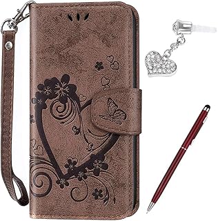 Kompatibel mit Huawei P Smart Hülle,Huawei P Smart Schutzhülle,Prägung Liebes Herz Schmetterlings Blumen PU Lederhülle Flip Hülle Handyhülle Ständer Tasche Wallet Schutzhülle für Huawei P Smart,Braun
