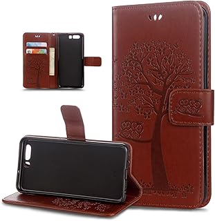Kompatibel mit Huawei P10 Hülle,Huawei P10 Schutzhülle,Prägung Eule Schmetterlings Sakura Kirschbaum PU Lederhülle Handyhülle Flip Ständer Wallet Handy Hülle Tasche Schutzhülle für Huawei P10,Braun