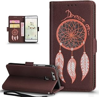 Huawei P9 Hülle,Huawei P9 Schutzhülle,ikasus Funkeln Glitzer Prägung Feder Campanula PU Lederhülle Flip Hülle Handyhülle Cover Ständer Tasche Wallet Case Schutzhülle für Huawei P9,Braun