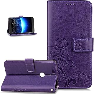 Kompatibel mit Huawei Nexus 6P Hülle,Huawei Nexus 6P Schutzhülle,Prägung Klee Blumen PU Lederhülle Flip Hülle Cover Schale Ständer Etui Schutzhülle Blau Tasche Wallet Case für Huawei Nexus 6P,Lila