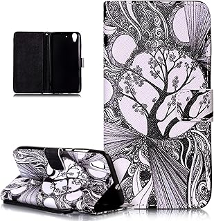 Kompatibel mit Huawei Y6 II Hülle,Huawei Y6 II Schutzhülle,Bunte Kunst Gemalt PU Lederhülle Flip Wallet Case Kunstleder Tasche Cover Hülle Tasche Schutzhülle für Huawei Y6 II,Schwarz Weiß Kunst Baum