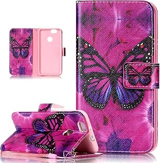 Kompatibel mit Huawei Nova Hülle,Huawei Nova Schutzhülle,Bunte Gemalt PU Lederhülle Flip Hülle Cover Schale Ständer Etui Karten Slot Wallet Tasche Case Schutzhülle für Huawei Nova,Lila Schmetterlings