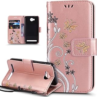 Kompatibel mit Huawei Y3 II Hülle,Huawei Y3 II Schutzhülle,Bunte Gemalt Prägung Schmetterlings Blumen PU Lederhülle Flip Hülle Cover Ständer Wallet Tasche Case Schutzhülle für Huawei Y3 II,Roségold