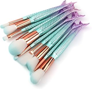 Meerjungfrau Makeup Bürsten Make-up Pinsel Set Schönheit Werkzeuge Efforty 10 Stück Pulver Foundation Erröten Verbergen Eyeliner Lidschatten Contours Pinsel + Fischschwanz Unterseite Erröten Pinsel