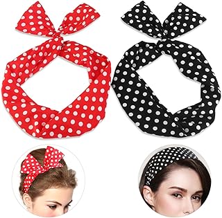 FRCOLOR 2 Stück Polka Dot Head Wrap für Frauen Retro Bandana Stirnband Boho Schleife Stirnbänder Kreuz Elastisch Stretch Dot Haarband Haarschmuck
