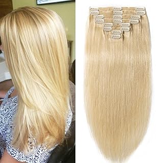 Clip in Extensions Echthaar Remy Haarverlängerung für komplette Haarverdichtung 8 Pcs 18 Clips Doppelt Dicke Haar 55 cm (160 g) #12/613 Hellbraun/Hell-Lichtblond