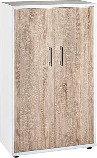 Möbelpartner Aktenschrank DELTA | HxBxT 1110 x 650 x 340 mm| weiß/eiche | Aktenregal Schrank Regal Büroschrank Schiebetürenschrank