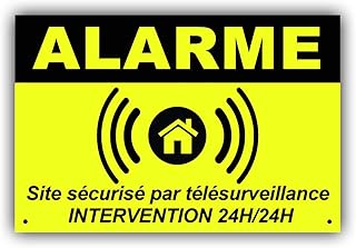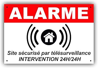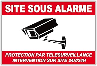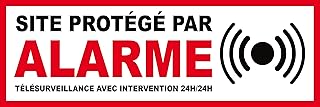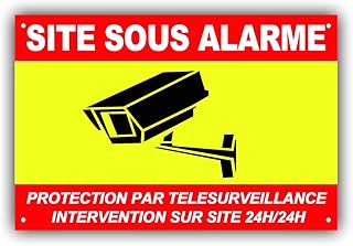 Sicherheitsschild SITE Alarmanlage 150 x 50 mm aus PVC + 4 Löcher zur Befestigung mit Text: Fernüberwachung mit Intervention 24 H/24 H (Alarmring)