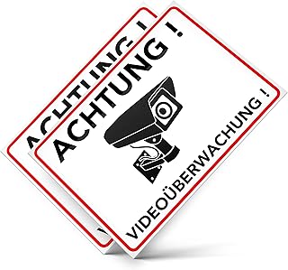 Achtung Videoüberwachung Aufkleber – Schild – Folie – Sticker (Kameraüberwachung – Überwachungskamera – Alarmanlage – Alarmgesichert – Warnschild) Weiss – 2 STK. (14,80 cm x 10,50cm)