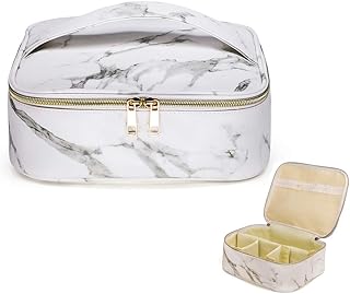 JooNeng Marmor-Make-up-Tasche mit Fach, große Reise-Kosmetiktasche, wasserdicht, Make-up-Tasche, Kulturbeutel, Organizer-Tasche für Frauen und Mädchen, weiß