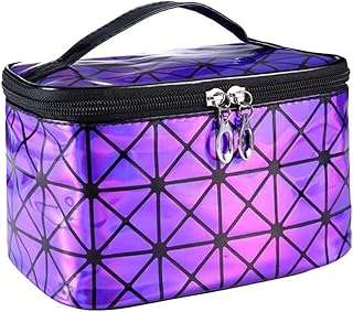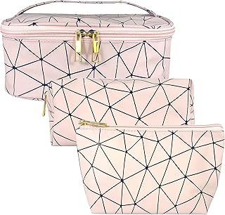 Hibala Make-up-Tasche, tragbare Reise-Kosmetiktasche, wasserdicht, Organizer, multifunktional, mit Reißverschluss, Kulturbeutel, Handtaschen für Frauen, Pink Geometric,