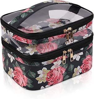 imerelez Doppellagige Kosmetiktasche, Make-up-Tasche, Kulturbeutel, groß, Reise-Make-up-Tasche, Organizer, Tasche für Mädchen, Frauen, tragbar, wasserdicht, faltbar, Schwarze Blume,