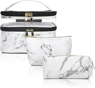 Kosmetiktasche, Marmor-Make-up-Tasche für Frauen, Kulturbeutel, große Reise-Make-up-Tasche, Organizer-Tasche für Mädchen, tragbar, wasserdicht, faltbar, 3 Stück, Marmor,