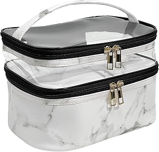 Make-up-Tasche, Kosmetik-Make-up-Tasche, Reise-Kulturbeutel, großer Make-up-Organizer für Damen, wasserdicht, tragbar, doppellagig, multifunktional mit verstellbaren Trennwänden, Marmorklar