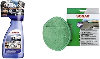 SONAX XTREME KunststoffDetailer Innen + Außen (500 ml) Reinigung & MicrofaserPflegePad (1 Stück) für gleichmäßiges Auftragen von Kunststoffpflegemitteln im Innenraum und ein gründliches Ergebnis