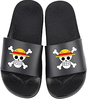 VICTORDOMO Damen Herren Duschsandalen für Cosplay Japanischer Anime ONE Piece Monkey D.Luffy Skull Logo Badeschuhe Weiche und rutschfeste Innenhaus-Poolschuhe,Schwarz,45/46EU