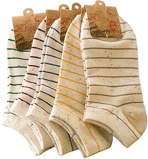 Damen Streifen Baumwoll Socken Mädchen Sneaker Socken Füßlinge Shallow Mund Socken Unsichtbare Socken,5 Paare Farbe Zufällige,EINWEG Verpackung
