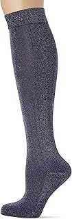Kniestrümpfe Shiny Baumwolle Damen schwarz blau viele weitere Farben verstärkte Kniesocken ohne Muster atmungsaktiv lang einfarbig hoch und warm mit Glitzer 1 Paar